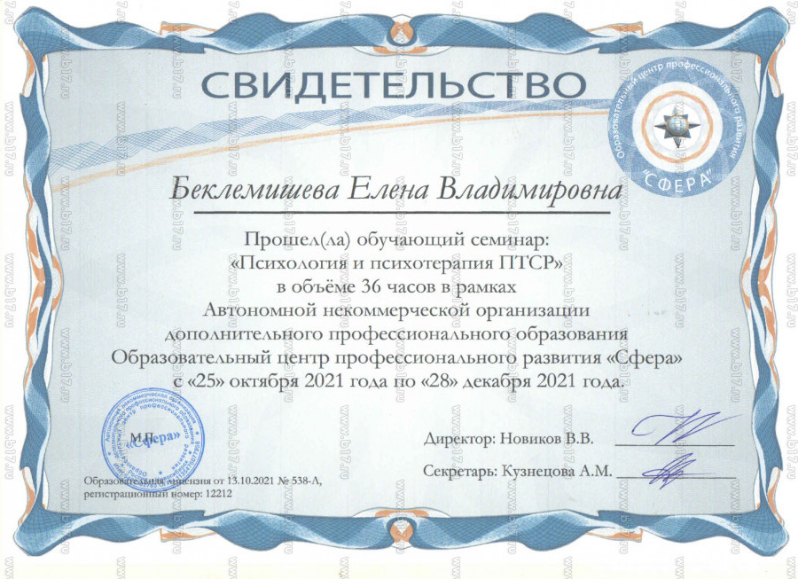 Специальность: психолог · Квалификация: психолог, преподаватель психологии