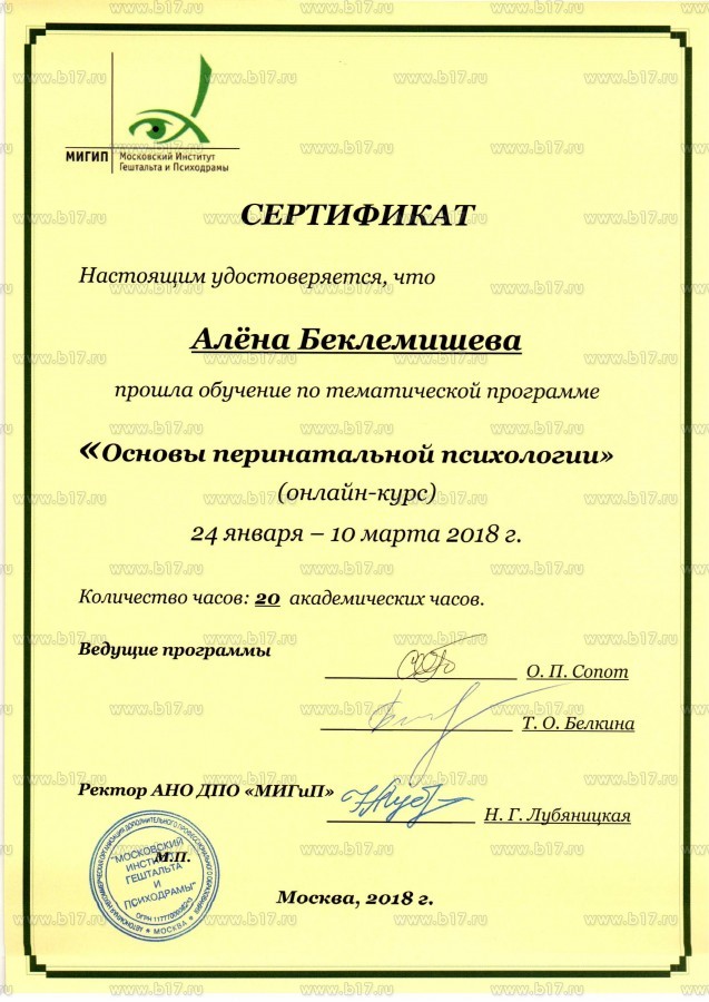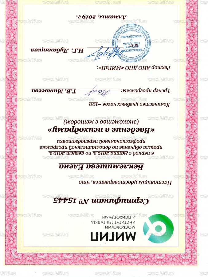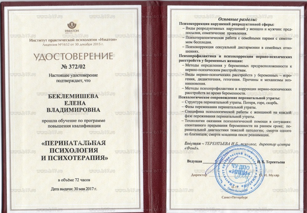 Институт практической психологии ИМАТОН · 72 часа · 2017