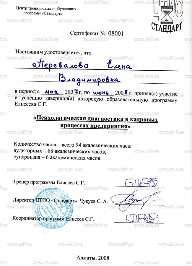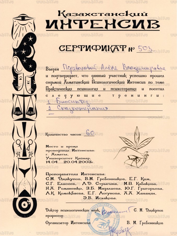 Национальная ассоциация психологов Казахстана · 60 часов · 2003