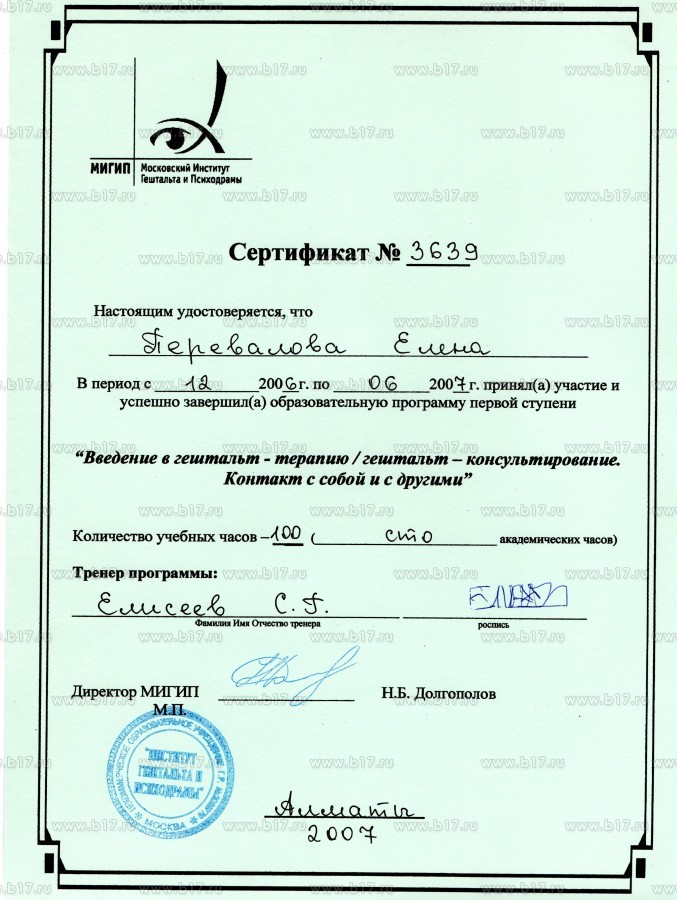 Московский Институт Гештальта и Психодрамы · 100 часов · 2007
