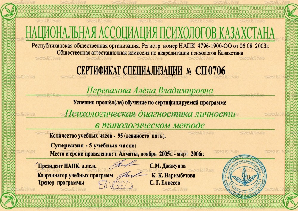 Национальная ассоциация психологов Казахстана · 95 часов · 2006