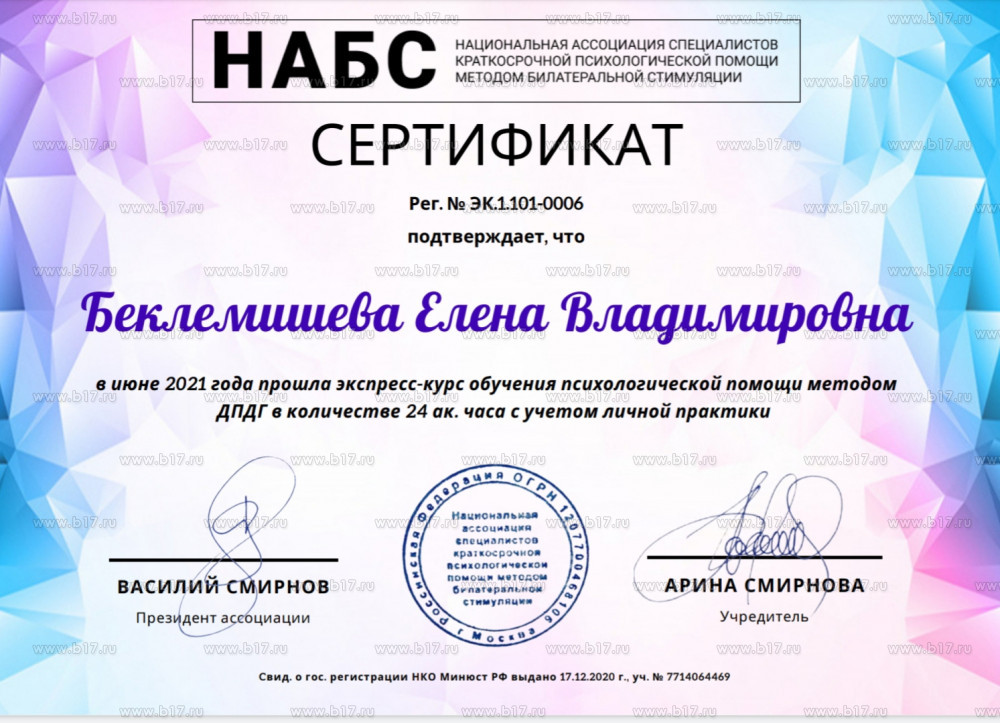 Национальная ассоциация специалистов краткосрочной психологической помощи методом билатеральной стимуляции · 24 часа · 2021